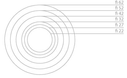 Na sliki so navedene mere okroglih lesenih ročk, ki so na voljo. Izbirate lahko od najmanjše fi 22 mm do fi 62 mm.